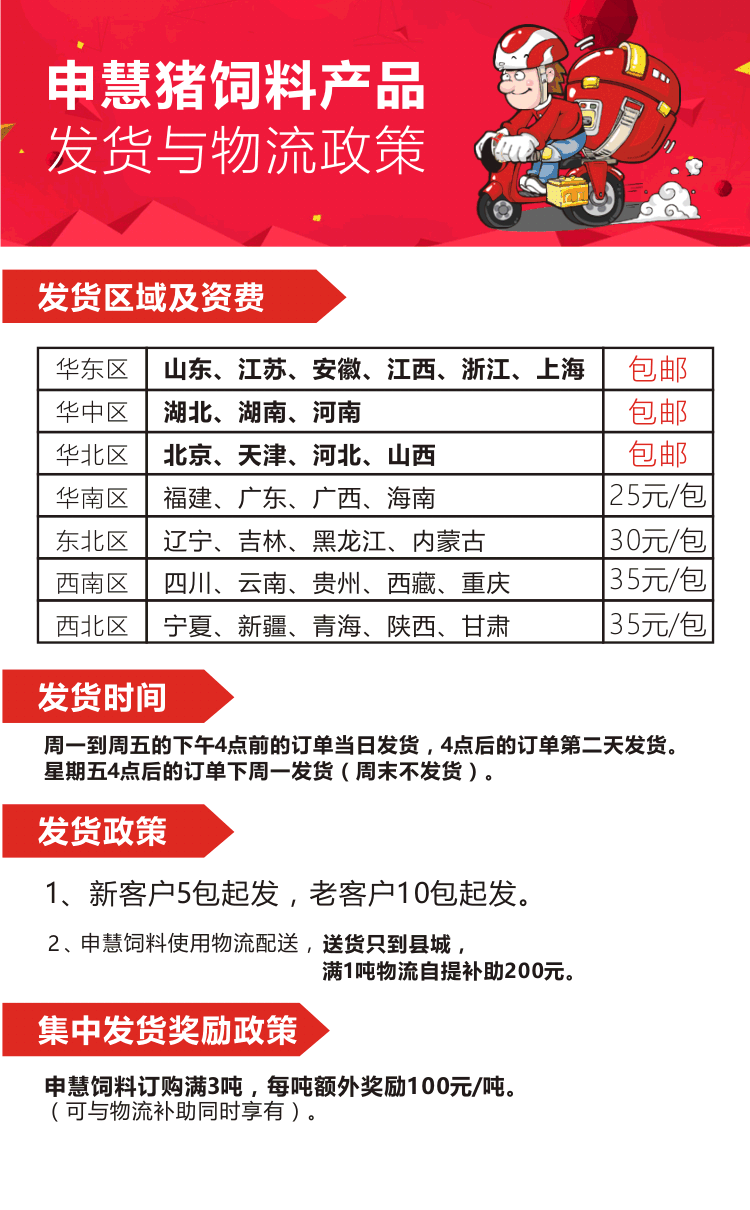 因全国物流系统价格调整!申慧优能系列产品物流政策调整!(不含开心100教槽料)
