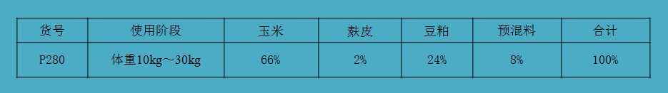 1、本产品为复合预混合饲料,不得直接饲喂动物,可参照以上推荐配方配制成配合饲料后,适用于体重10千克~30千克之乳仔猪。