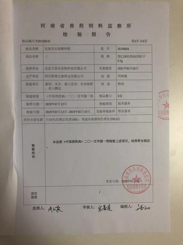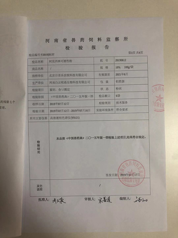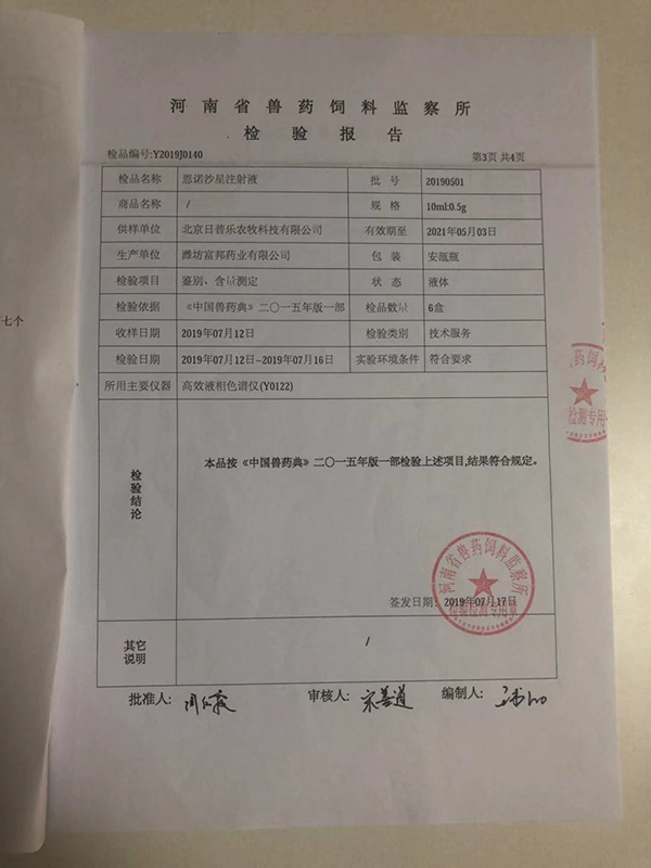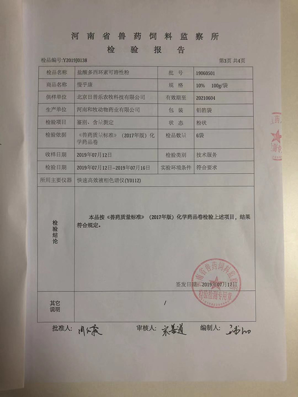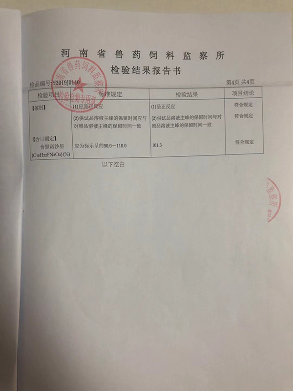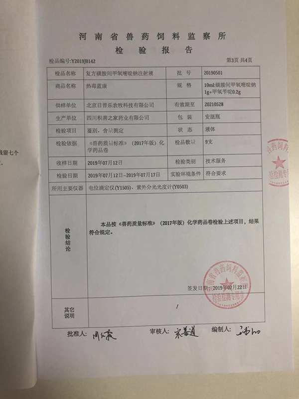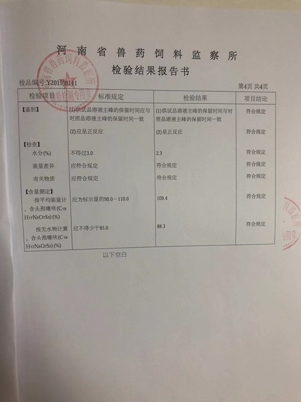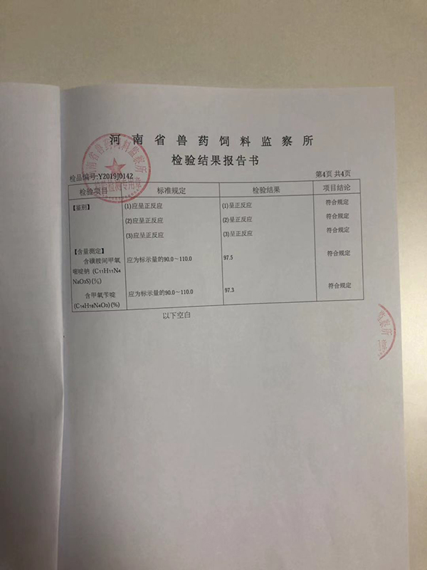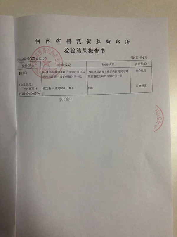 抽检合作单位:河南省兽药饲料监察所