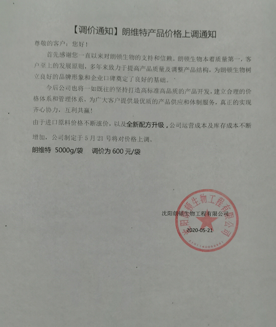 【调价通知】乐淘农牧价格上调通知