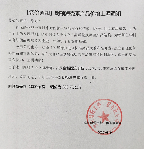 【调价通知】朗顿价格上调通知