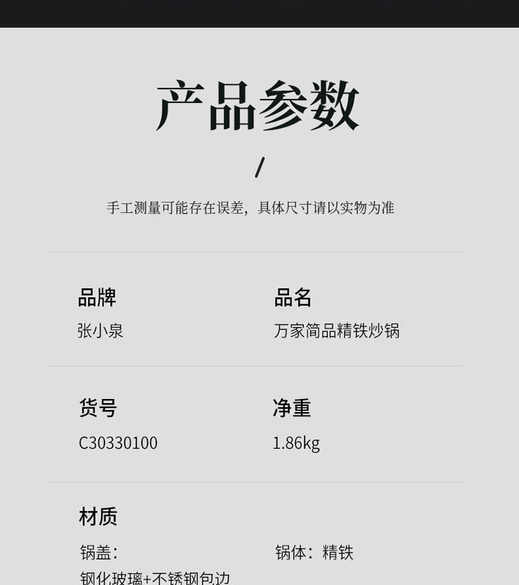 商品名称:张小泉 万家简品精铁炒锅 C30330100 商品编号:129128 品牌:积分商城 上架时间:2023-08-01