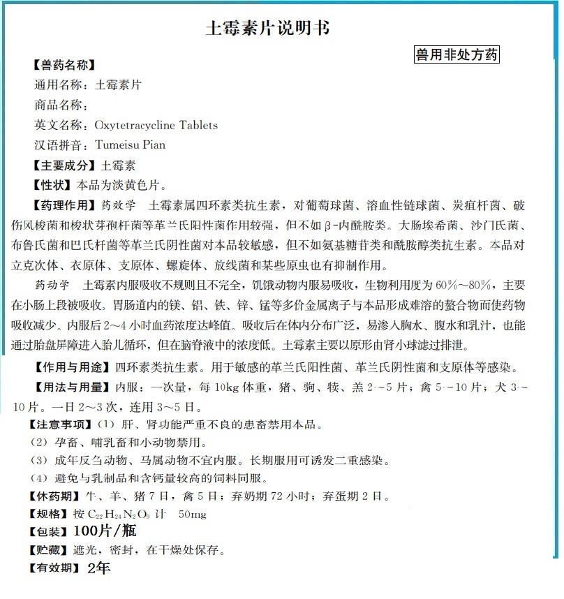 - 商品名称:【予邦】土霉素片100片 兽用兽药 国标可追溯 广谱抗生素抗菌细菌感染 大肠埃希菌沙门氏菌巴氏杆菌