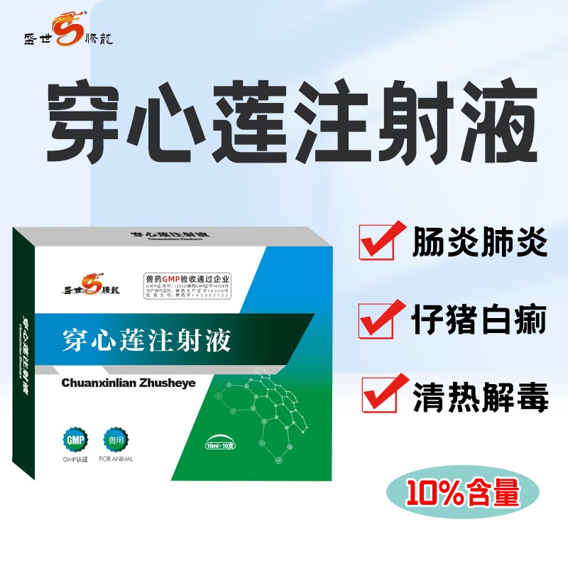 - 商品名称:【盛世腾龙】穿心莲注射液(新)仔猪腹泻、拉稀、黄白痢、清热解毒、肺炎、肠炎、咳嗽腹泻拉稀止泻