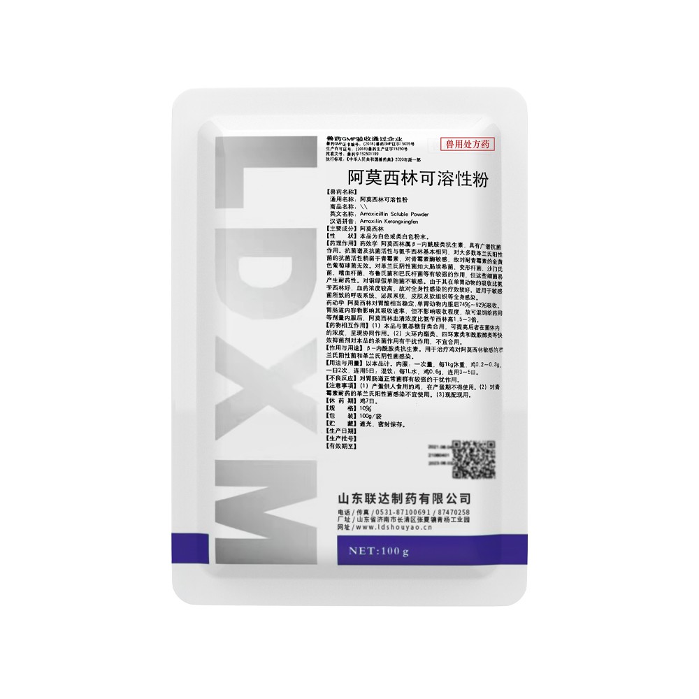 - 商品名称:【联达】10%阿莫西林粉100g 阿莫西林 阿莫 广谱抗菌,产后炎症、副猪、链球菌、猪丹毒等