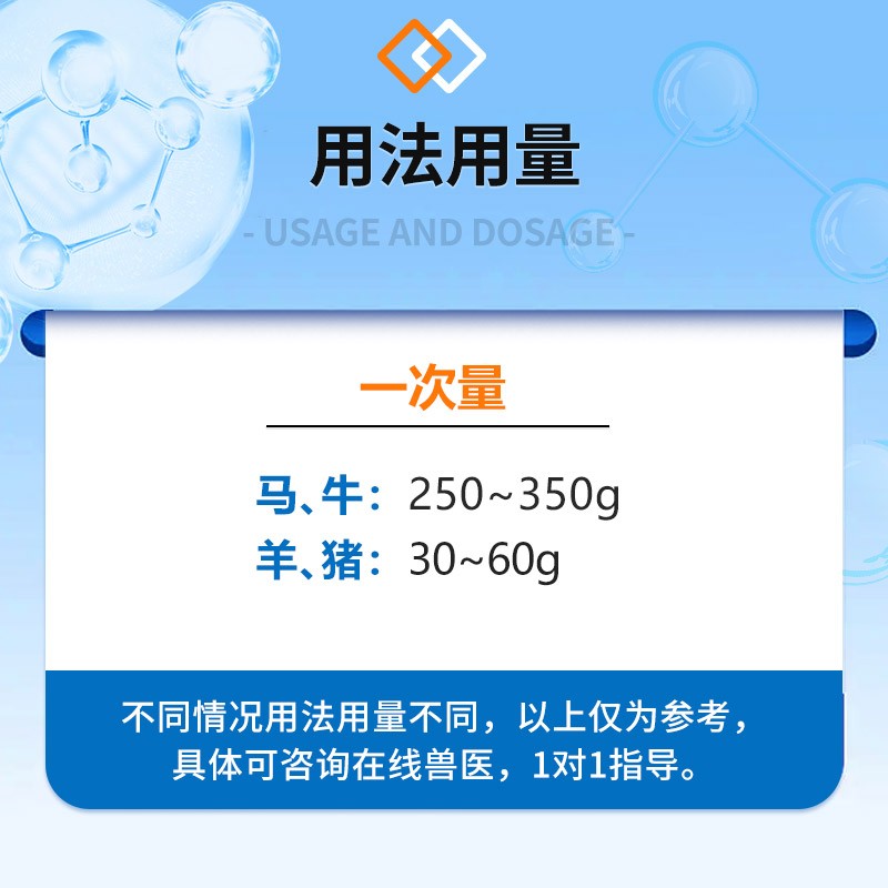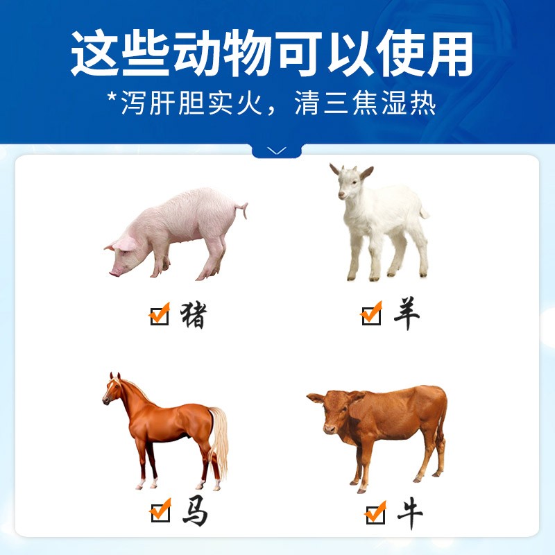 管理员:龙胆泻肝散:马、牛250~350g;羊、猪30~60g,一次量;1袋拌料500斤。