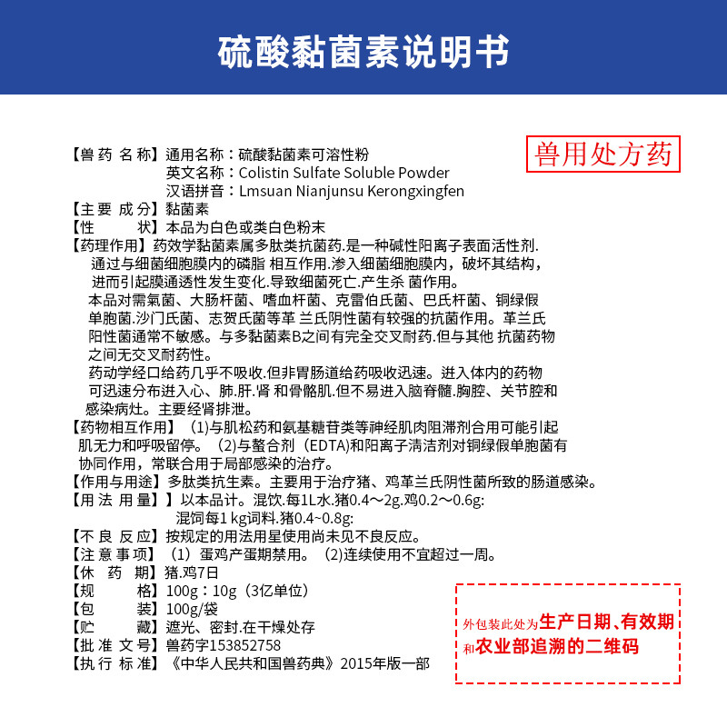 - 商品名称:【吉博士】10%硫酸黏菌素可溶性粉 肠道感染沙门氏菌