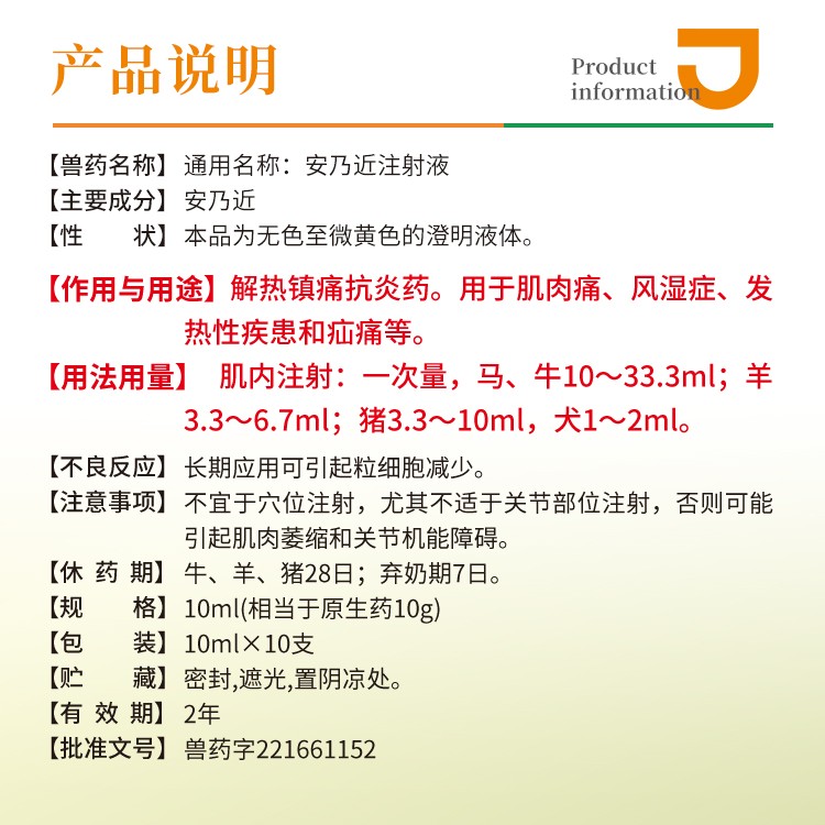 - 商品名称:【猪大夫】安乃近注射液 解热镇痛抗炎退烧药关节炎止疼药仔猪链球菌发烧