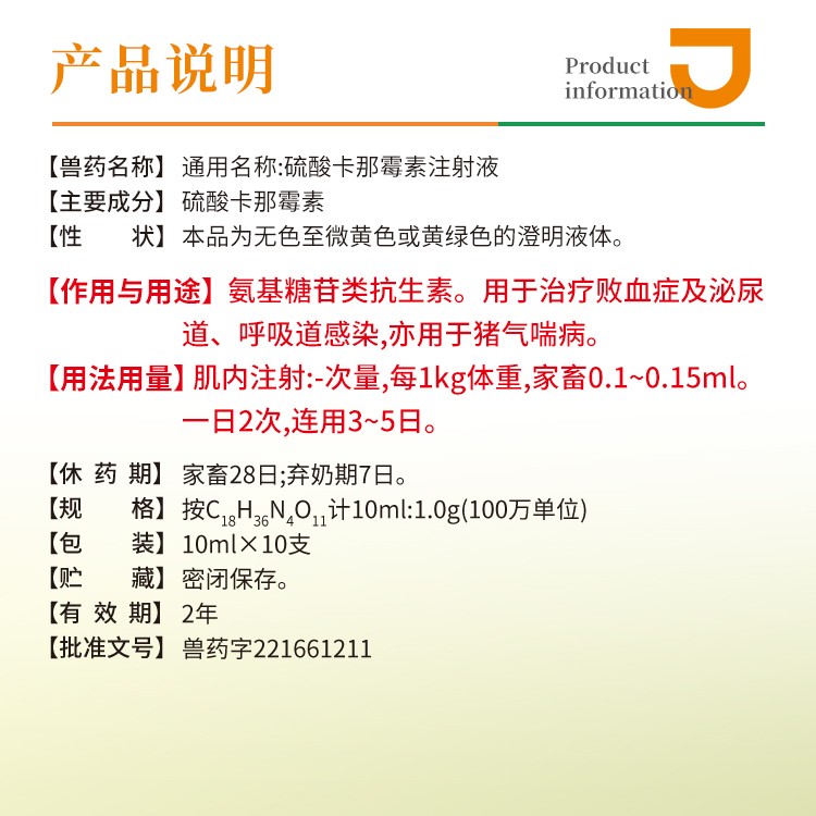 - 商品名称:【猪大夫】硫酸卡那霉素注射液抗菌消炎专治大肠杆菌支原体呼吸道泌尿道肠道感染败血症