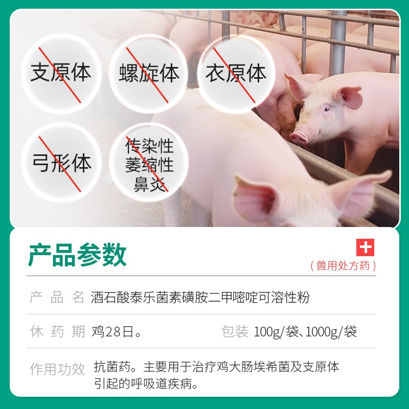 - 主要成分:酒石酸泰乐菌素磺胺二甲嘧啶可溶性粉