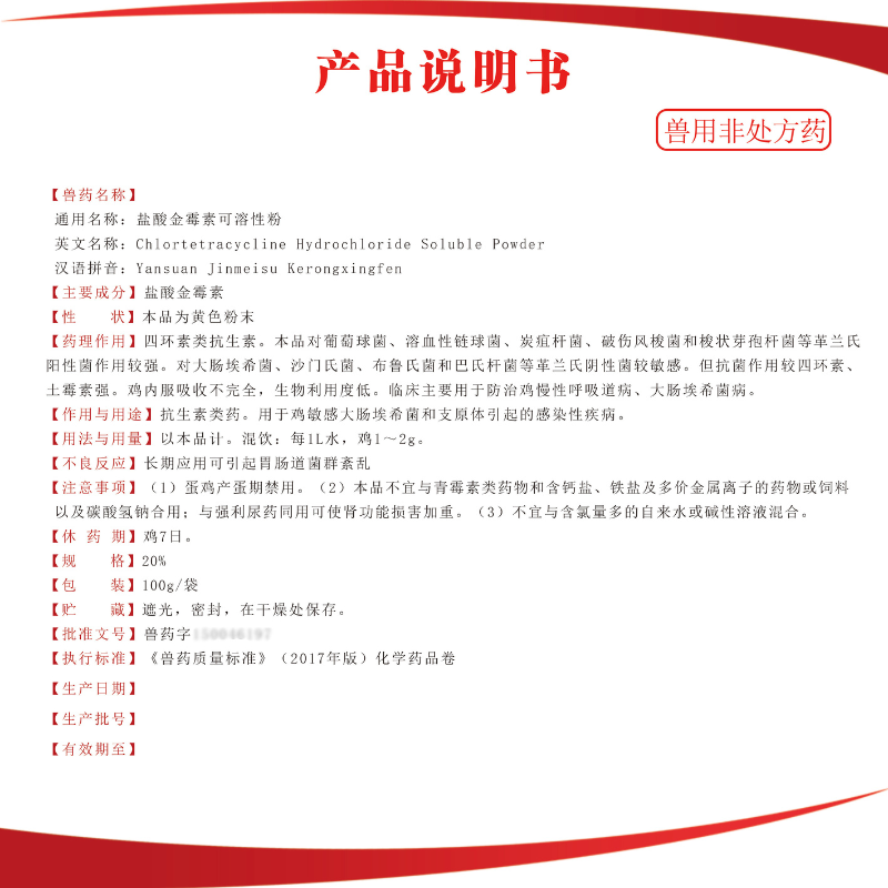 - 主要成分:盐酸金霉素