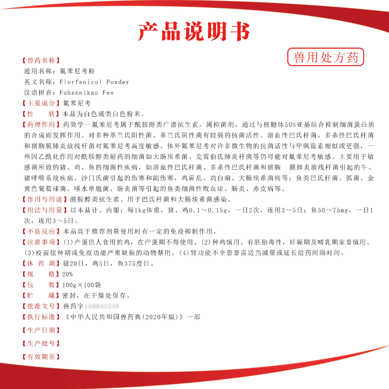 - 主要成分:氟苯尼考