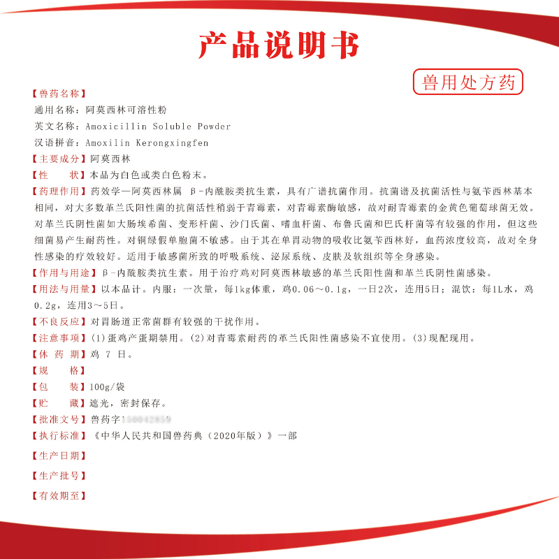 - 商品名称:【夯夯猪】10%阿莫西林可溶性粉100g 广谱杀菌 母猪全身感染 产后消炎 产后消炎 正品国标