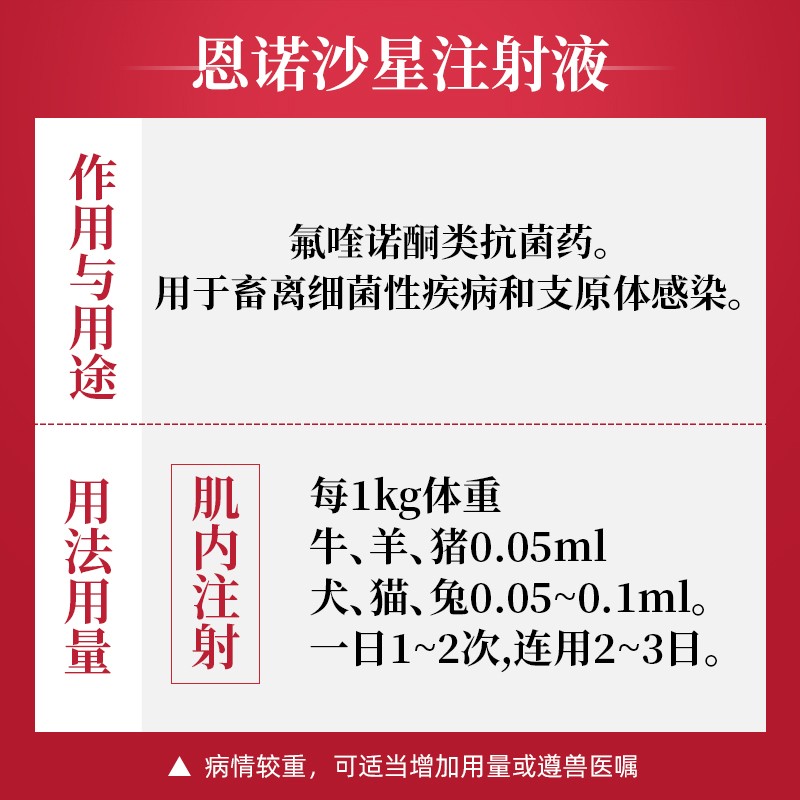 管理员:您好,恩诺沙星每1KG体重猪用0.05ml,这个是用量哦