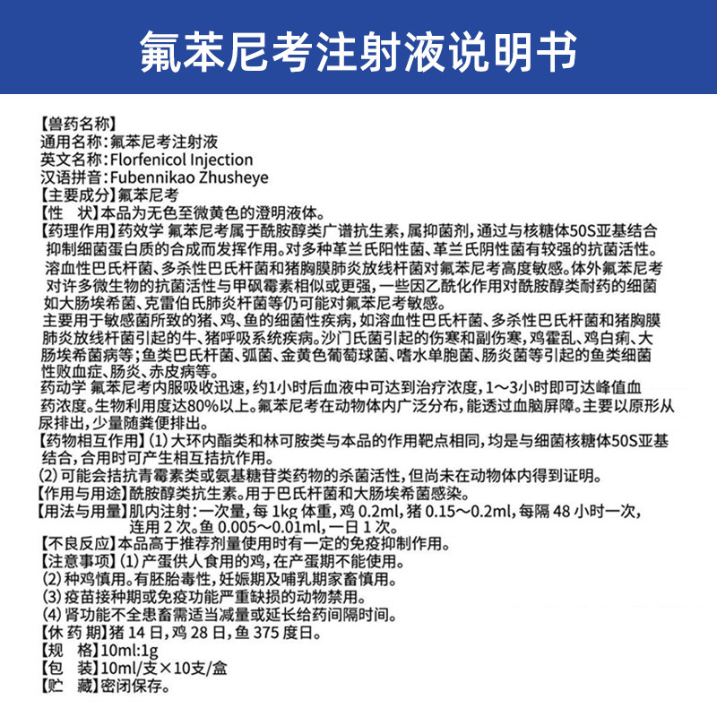 - 商品名称:【吉博士】10%氟苯尼考注射液针剂 呼吸道 胸膜肺炎 白痢 伤寒