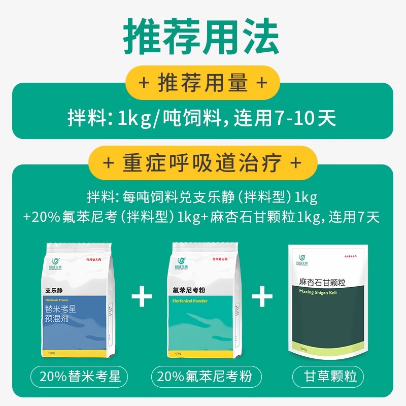 你好请问替米考星和氟苯尼考都是100克,能拌料多少斤