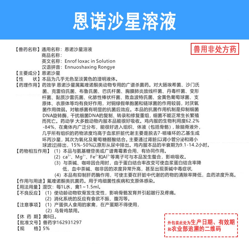 - 主要成分:恩诺沙星