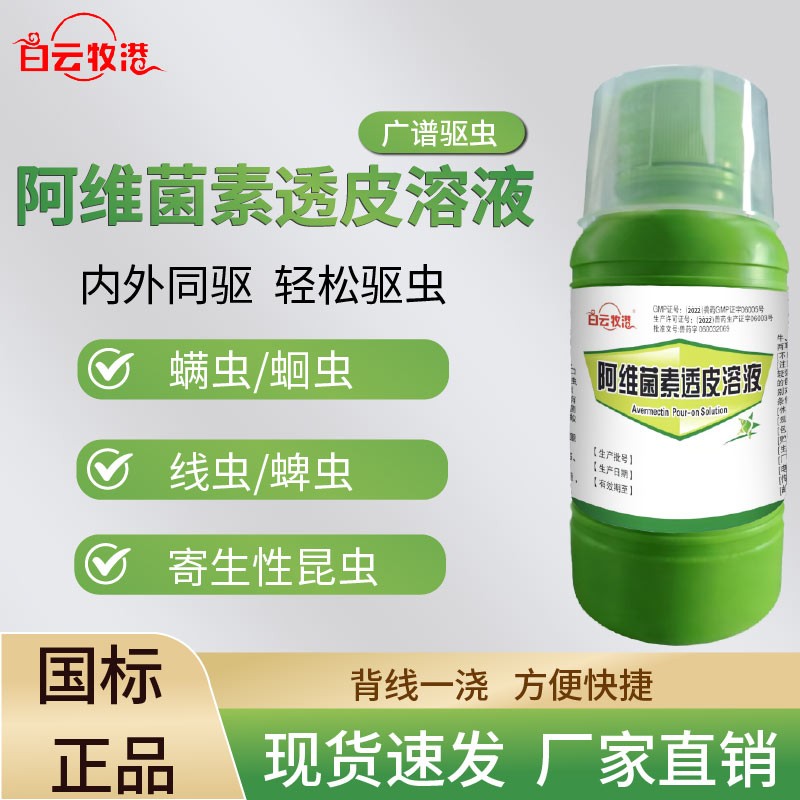商品名称:白云牧港兽药驱虫药阿维菌素透皮溶液猪牛羊用驱虫内外全驱净打虫药 商品编号:ZHUEJPH014290 品牌:白云牧港 上架时间:2022-02-24 商品净重:250克 产品批文号:兽药字060032069
