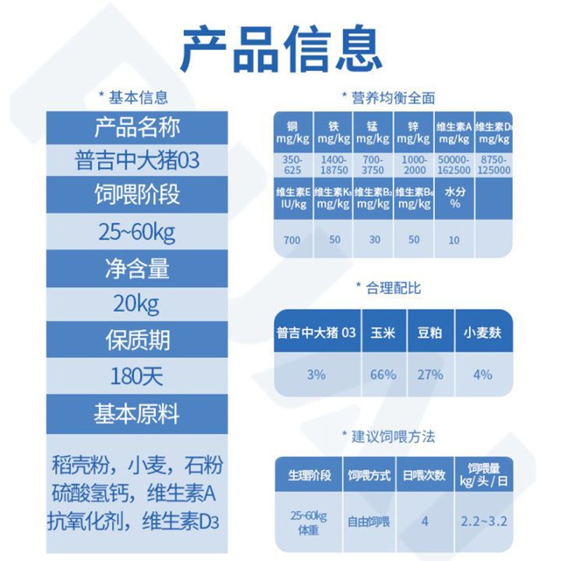 - 商品名称:【普吉中大猪03】3%中猪预混料混合料中猪饲料育肥猪饲料预混料
