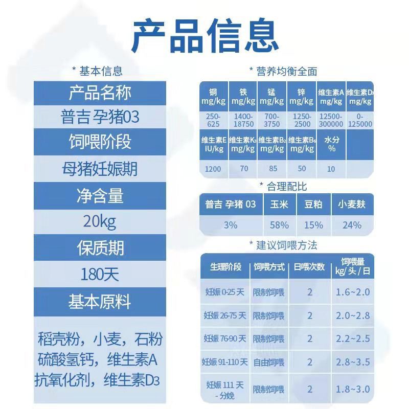 - 商品名称:【普吉孕猪03】(普爱饲料升级款)3%妊娠母猪预混料猪饲料 怀孕母猪料 妊娠料