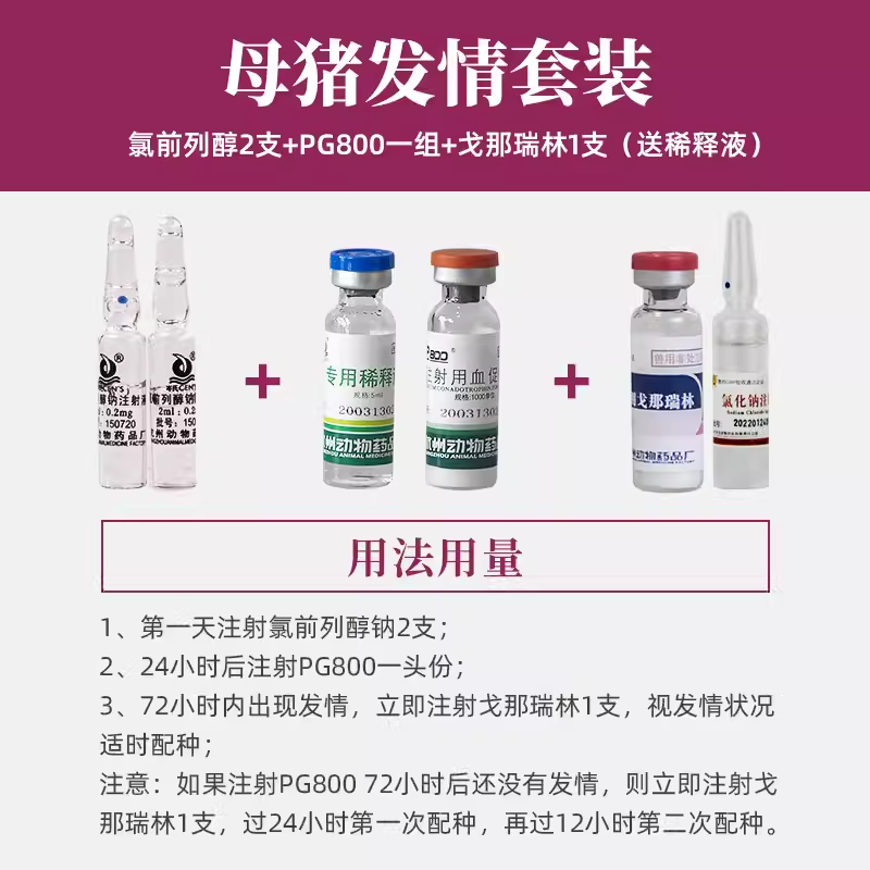 - 商品名称:【杭动药业】母猪催情套餐氯前列醇钠复方孕马血清pg800戈那瑞林促进繁殖障碍母猪发情排卵同期发情