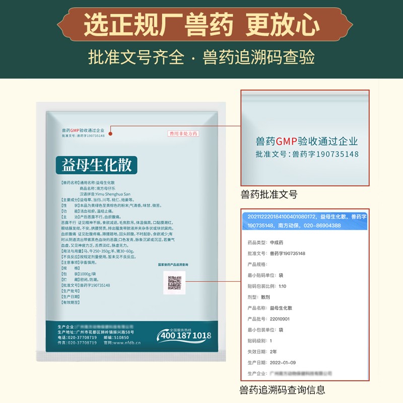- 商品名称:【正格农牧】育隆益母生化散兽用猪鸡羊产后恢复保健产后恶露不行活血消炎兽药