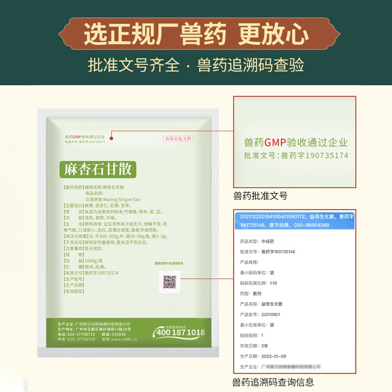 - 商品名称:【正格农牧】育隆麻杏石甘散兽用鸡禽药清肺猪热咳嗽解毒胸膜炎中药呼吸道兽药