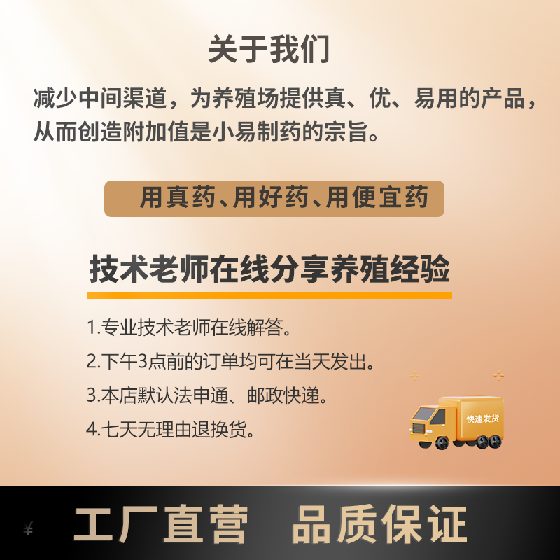 卖家回复 感谢您选择了小易制药,为客户提供质优价廉的产品和服务是我们的宗旨,我们会一如既往的为养殖户做好服务!
