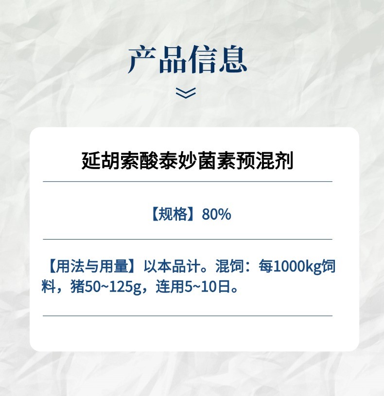 - 商品名称:【小易制药】80%延胡索酸泰妙菌素预混剂支原体肺炎喘气病呼吸道胸膜肺炎回肠炎猪痢疾