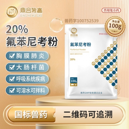 - 商品名称:【鼎合牧高】20%氟苯尼考粉100g 主要用于敏感菌所致的猪、鸡、鱼的细菌性疾病原猪易自营
