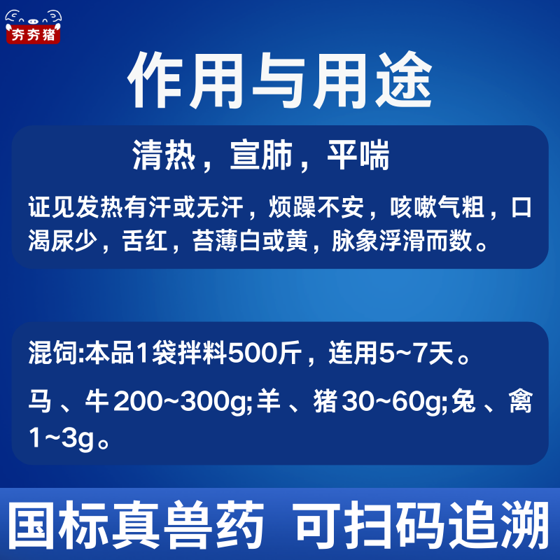 - 商品名称:【夯夯猪】麻杏石甘散1000g 清热宣肺 止咳祛痰 呼吸道病 国标中兽药