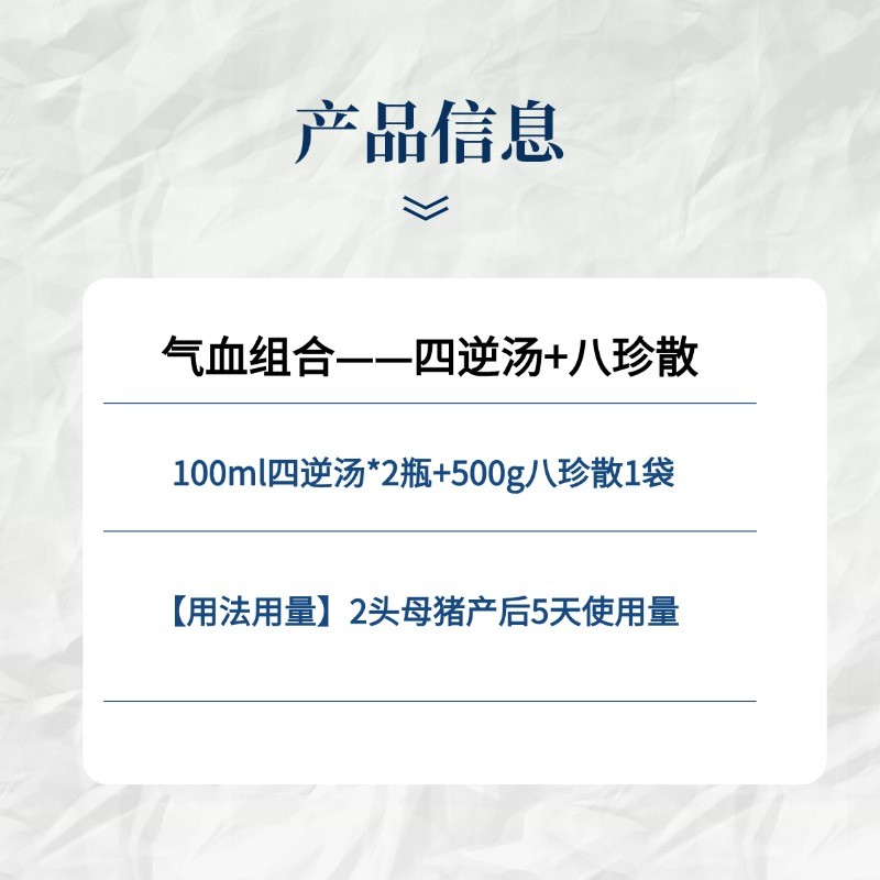- 商品名称:【小易制药】八珍散+四逆汤 气血套餐针对僵猪、弱猪调理组合 提料增食、母猪产后体质虚弱