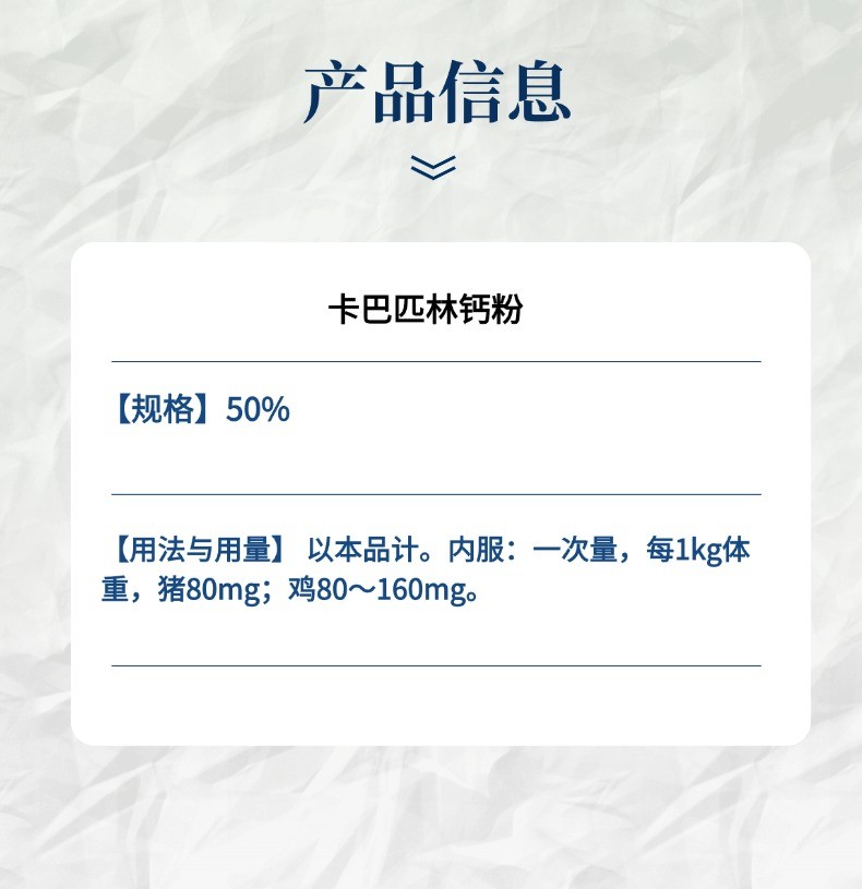 - 商品名称:【小易制药】50%卡巴匹林钙粉解热镇痛抗炎药。用于控制猪、鸡的发热和疼痛。退热解表消炎,针对高热不食