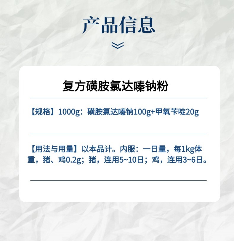 - 主要成分:磺胺氯达嗪钠、甲氧苄啶