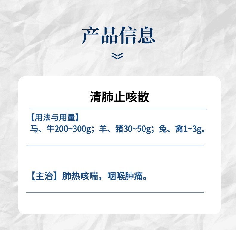 - 商品名称:【小易制药】清肺止咳散清泻肺热化痰主治止咳肺热咳喘咽喉肿痛,针对猪肺疫肺炎传染性胸膜肺炎喘气病圆蓝病