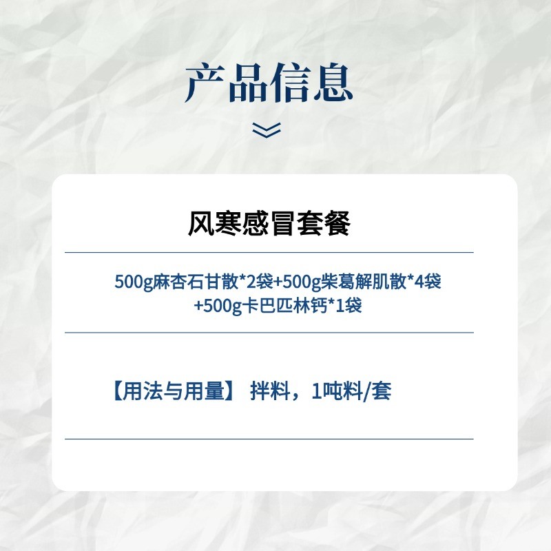 商品名称:【小易制药】风寒感冒易案针对风寒感冒引起的怕冷恶寒、咳嗽鼻涕,中西合璧,直达病灶。 商品编号:xyzy00052 上架时间:2022-10-14 商品净重:3500.000千克 保质期:24月 使用方法:本套餐拌料1吨,连用5-7天 生产厂家:潍坊牧易生物科技有限公司 使用剂量:本套餐拌料1吨,连用5-7天