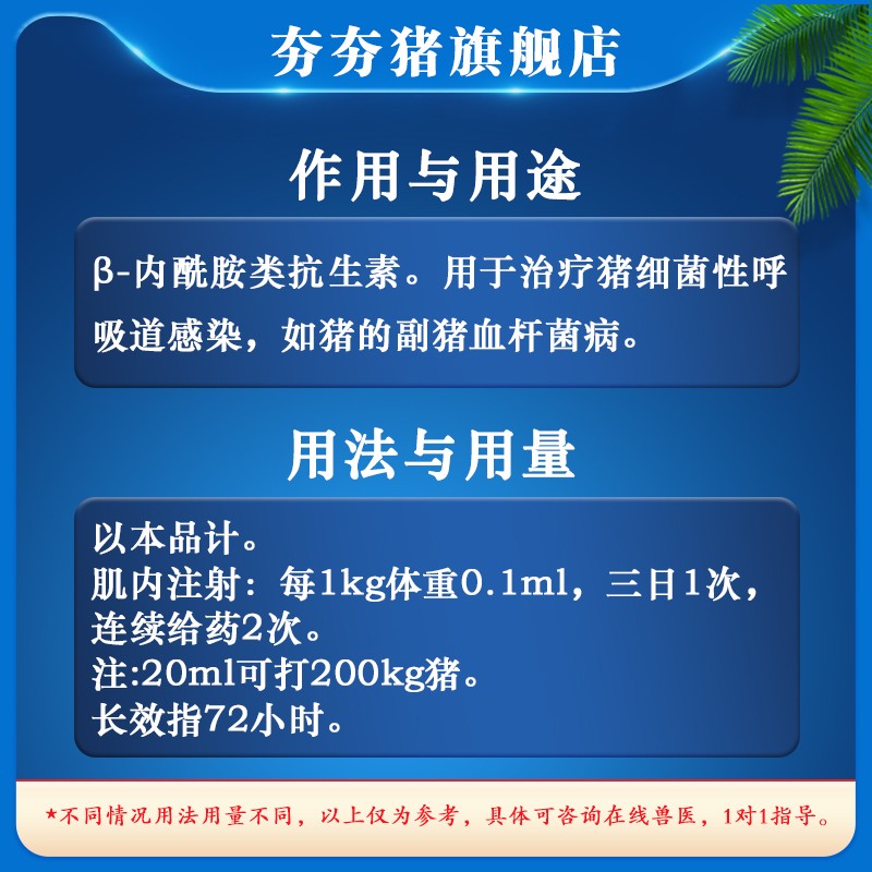 管理员:可以搭配中药使用,请注意:该产品是混悬液,无需稀释,直接注射。最好不要和其他针剂混合注射,如果需要多针注射,可以在猪的另一侧多点注射。