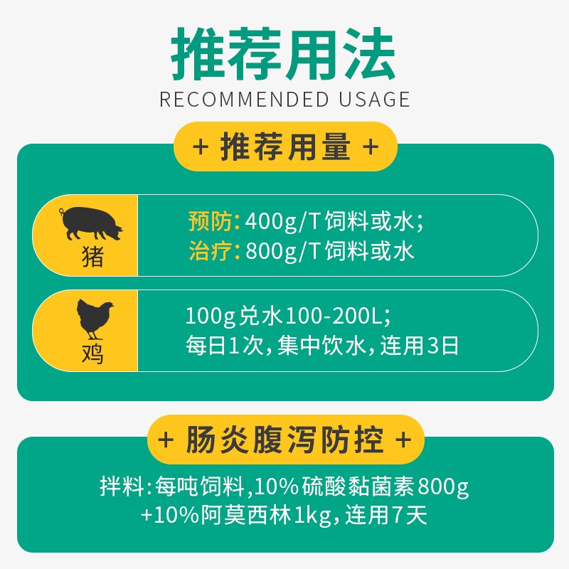 - 使用剂量:预防:100g袋/500斤 治疗:100g袋/250斤