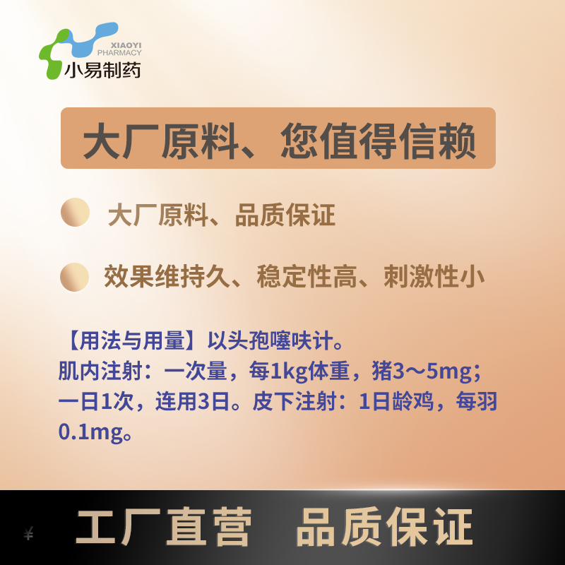 - 商品名称:【小易制药】粉针剂0.5g注射用头孢噻呋钠三代头孢用于母猪产前产后消炎仔猪三针保健奶牛乳房炎等的治疗