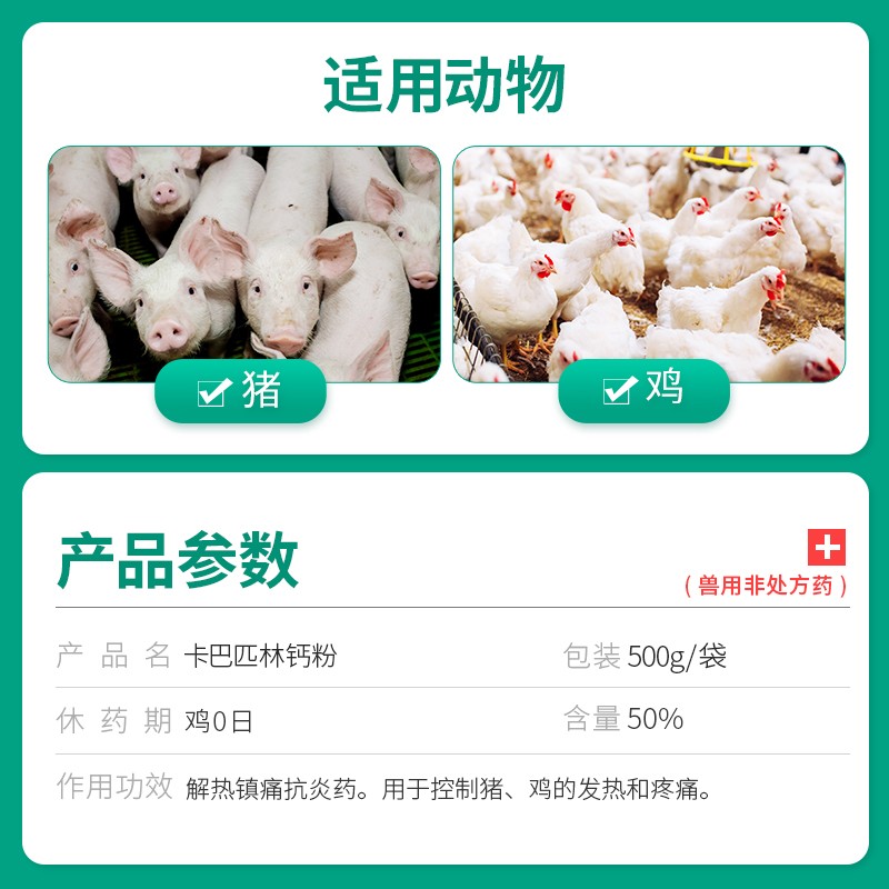 - 商品名称:【回盛生物】50%卡巴匹林钙可溶性粉500g 解热镇痛消炎 治疗畜禽感冒发烧退烧降温