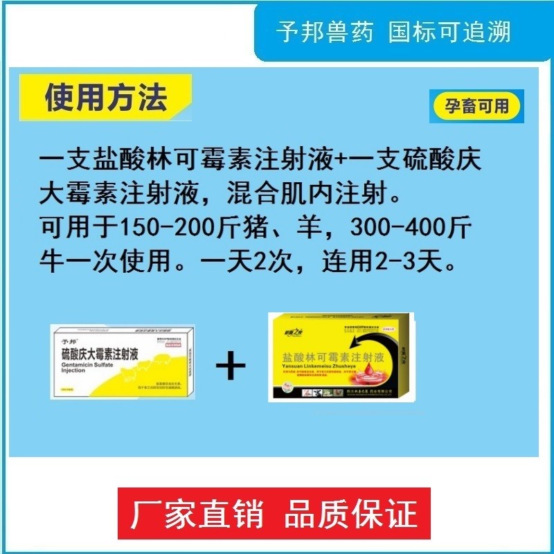 - 商品名称:【予邦】产前产后重症康(硫酸庆大霉素注射液+林可霉素注射液)-母畜产前不吃,产后消炎,产后恶露不尽