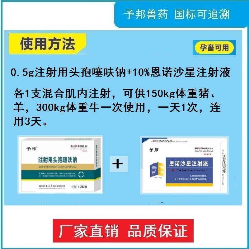 - 商品名称:【予邦】副猪链球专治(0.5g注射用头孢噻呋钠+恩诺沙星注射液)-副猪链球菌大肠杆菌-猪牛羊孕畜可用
