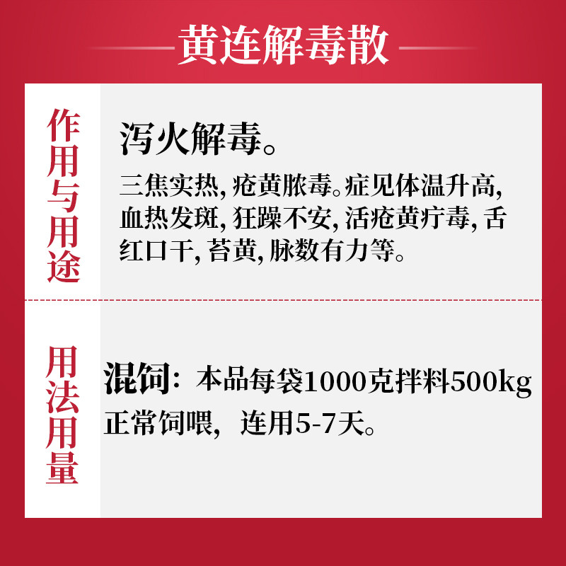- 商品名称:【吉博士】黄连解毒散1kg 猪用 发烧 泻火 解毒 中药
