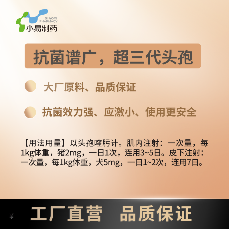 - 商品名称:【小易制药】第四代头孢0.5g注射用硫酸头孢喹肟广谱抗菌消炎胸膜肺炎呼吸道疾病产后炎症仔猪三针保健