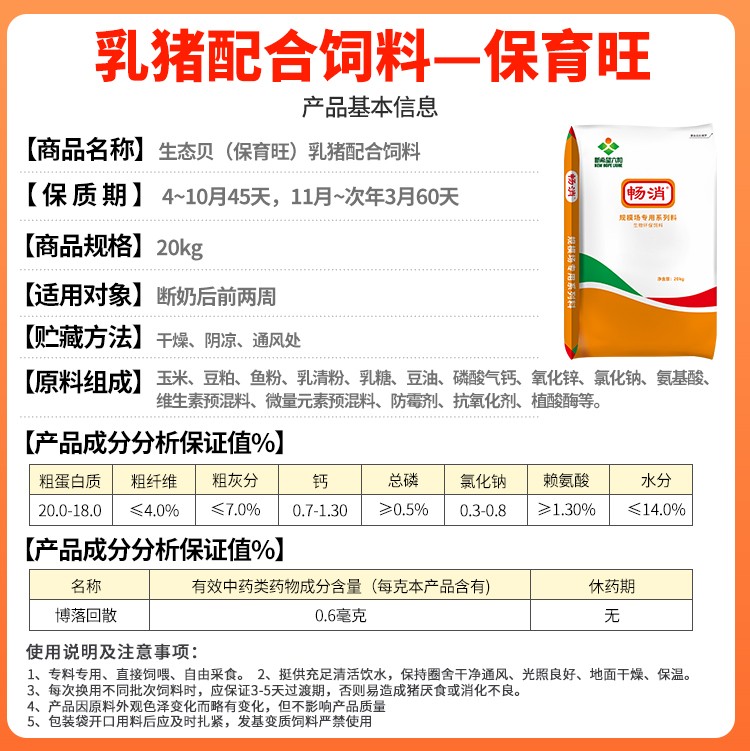 - 商品名称:【新希望六和】生态贝保育旺乳猪配合饲料 仔猪乳猪全价饲料生长猪 东北及偏远地区不发