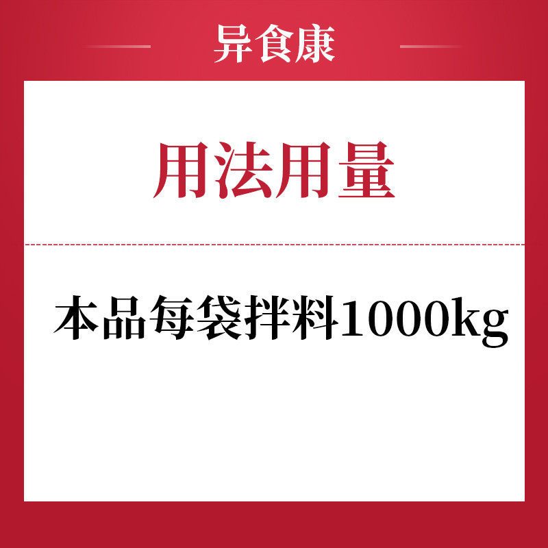 管理员:您好,异食康按照干料一袋拌料2000斤用就可以哦