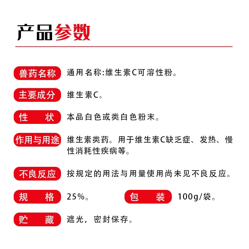- 商品名称:【开扬】25%维生素c可溶性粉 夏季VC 维生素 养殖维生素C粉兽药维C粉 增强抵抗力 肝脏解毒能力