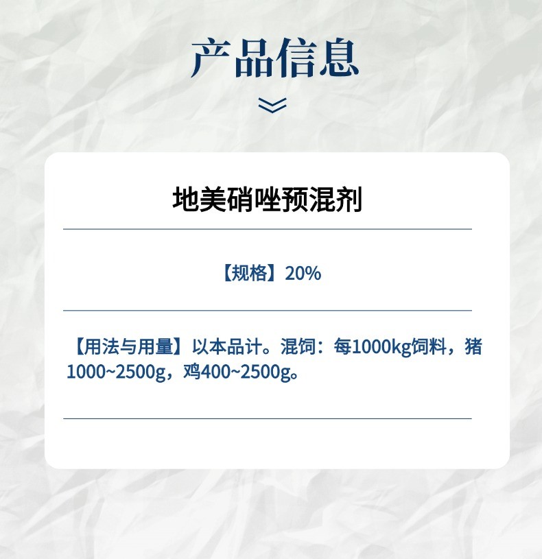 - 商品名称:【小易制药】20%地美硝唑预混剂用于顽固性腹泻拉稀、血痢、肠道感染、大肠杆菌、禽组织滴虫病等