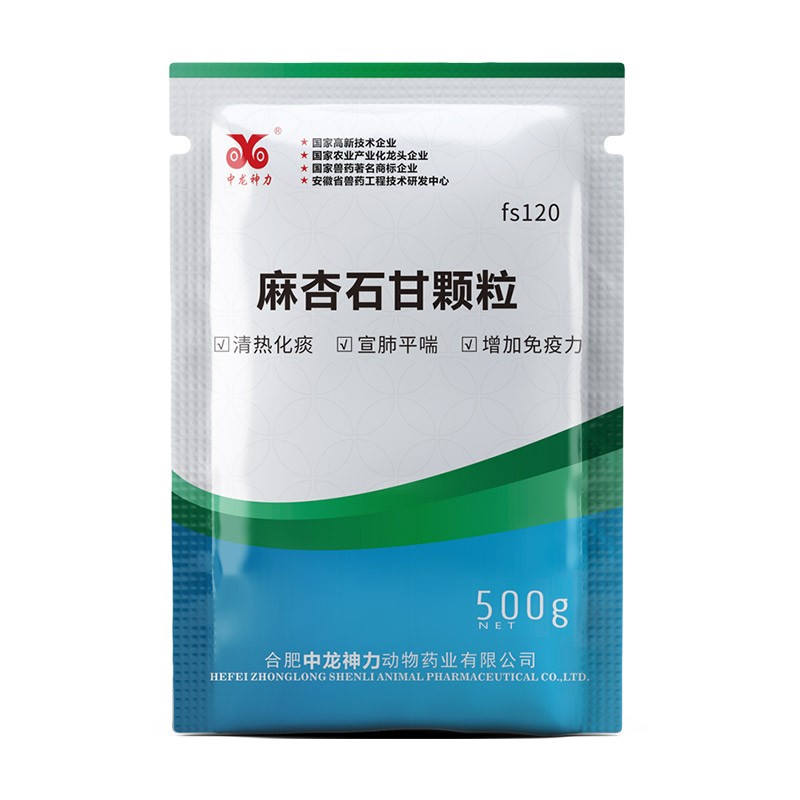 商品名称:【中龙神力】麻杏石甘颗粒 500g/袋 猪用清热宣肺 化痰止咳 平喘 肺热咳嗽易溶于水 商品编号:fs120 品牌:中龙神力 上架时间:2024-05-29 商品净重:500克 产品批文号:兽药字120156161
