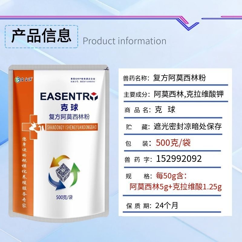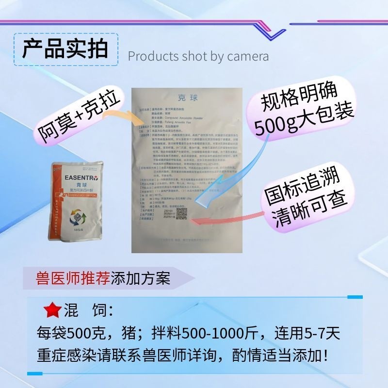 - 商品名称:【宜生源】复方阿莫西林粉大包装500g真有克拉维酸钾链球菌脑炎关节炎副猪强力阿莫西林粉母猪保健呼吸道